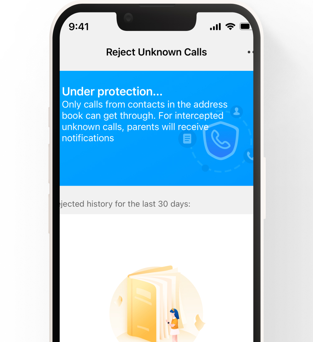 Warnung vor unbekannten Anrufern. Nur gespeicherte Kontakte können die Uhr erreichen, und Eltern erhalten Benachrichtigungen für alle unbekannten Anrufer.