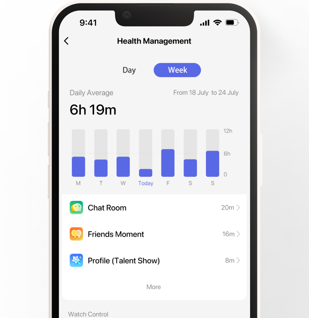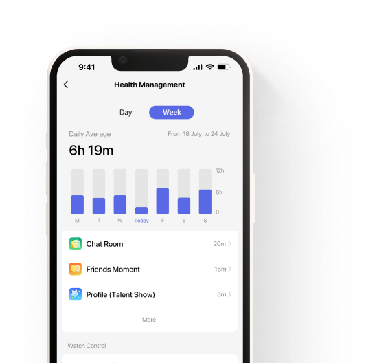 Gesundheitsmanagement. Eltern können auf ihrem Smartphone detaillierte Zeitberichte für jede App einsehen, die auf der Smartwatch ihres Kindes verwendet wird.