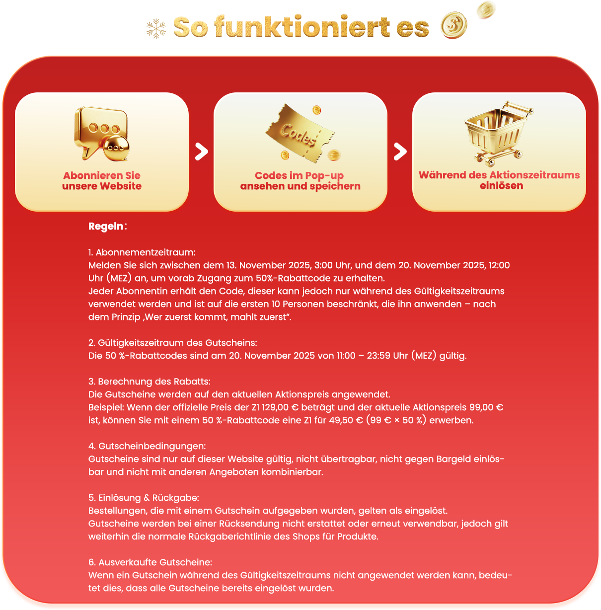 20 % Rabatt auf Z1 & mehr Angebote folgen! Jetzt Frühzugang sichern >>