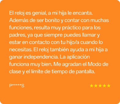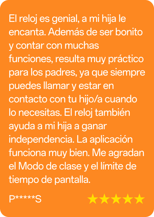 “El reloj inteligente sirve de enlace entre los padres y sus niños/as: puedes ponerte en contacto con tu niño/a en cualquier momento, buscar su ubicación y consultar información importante con la aplicación asociada.”