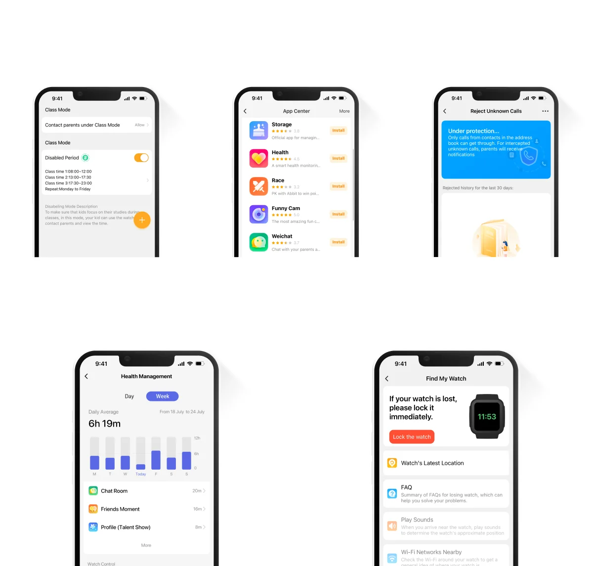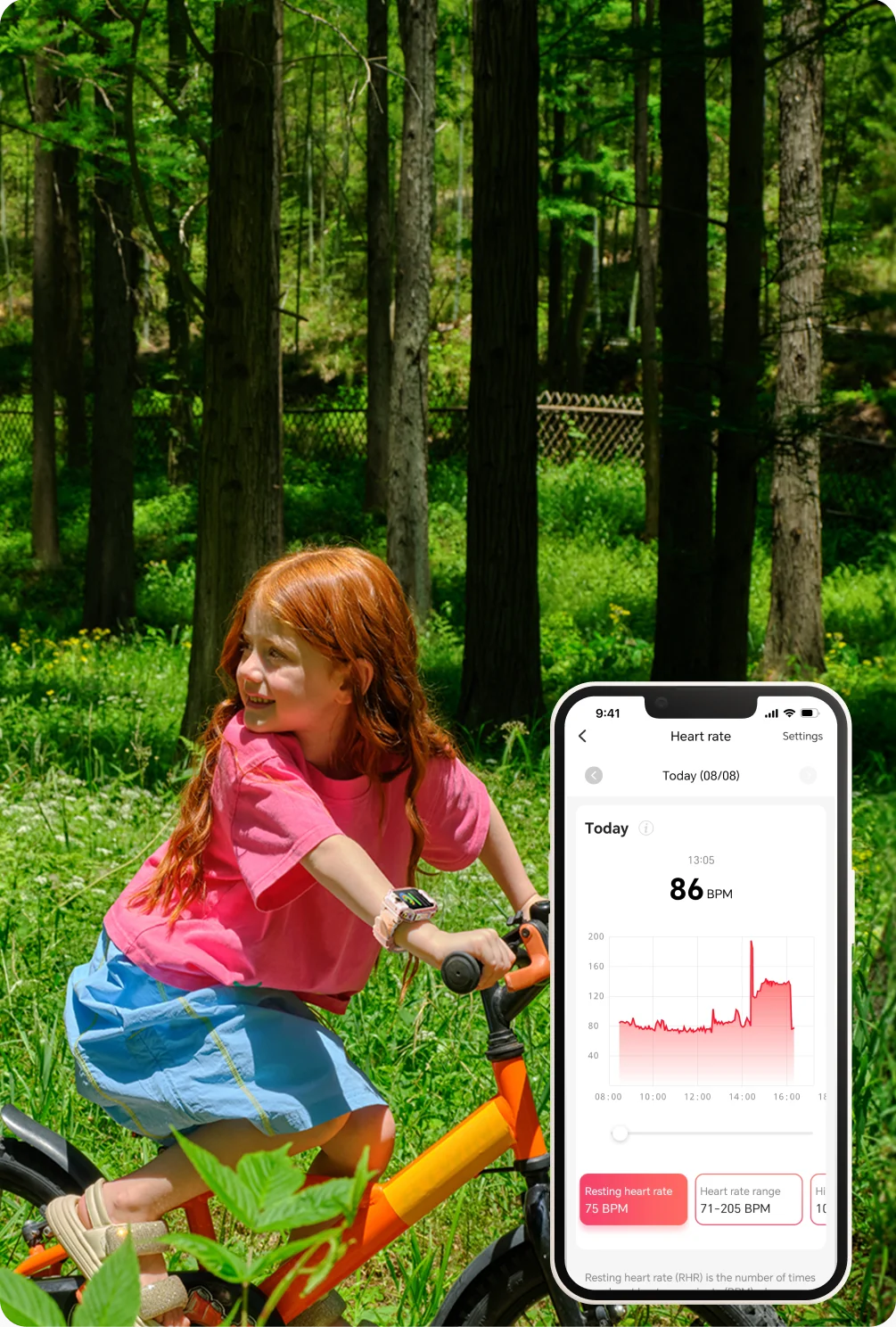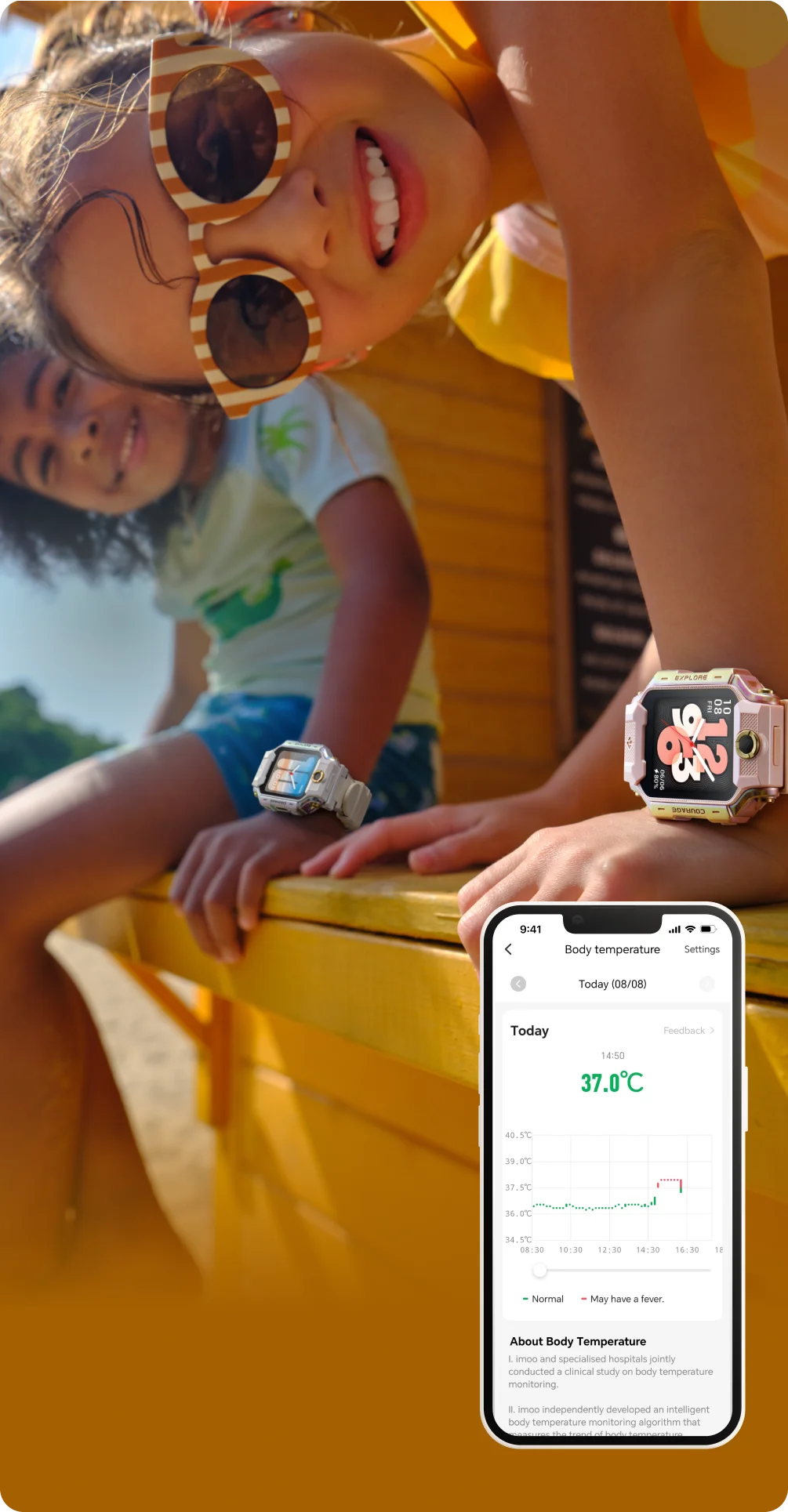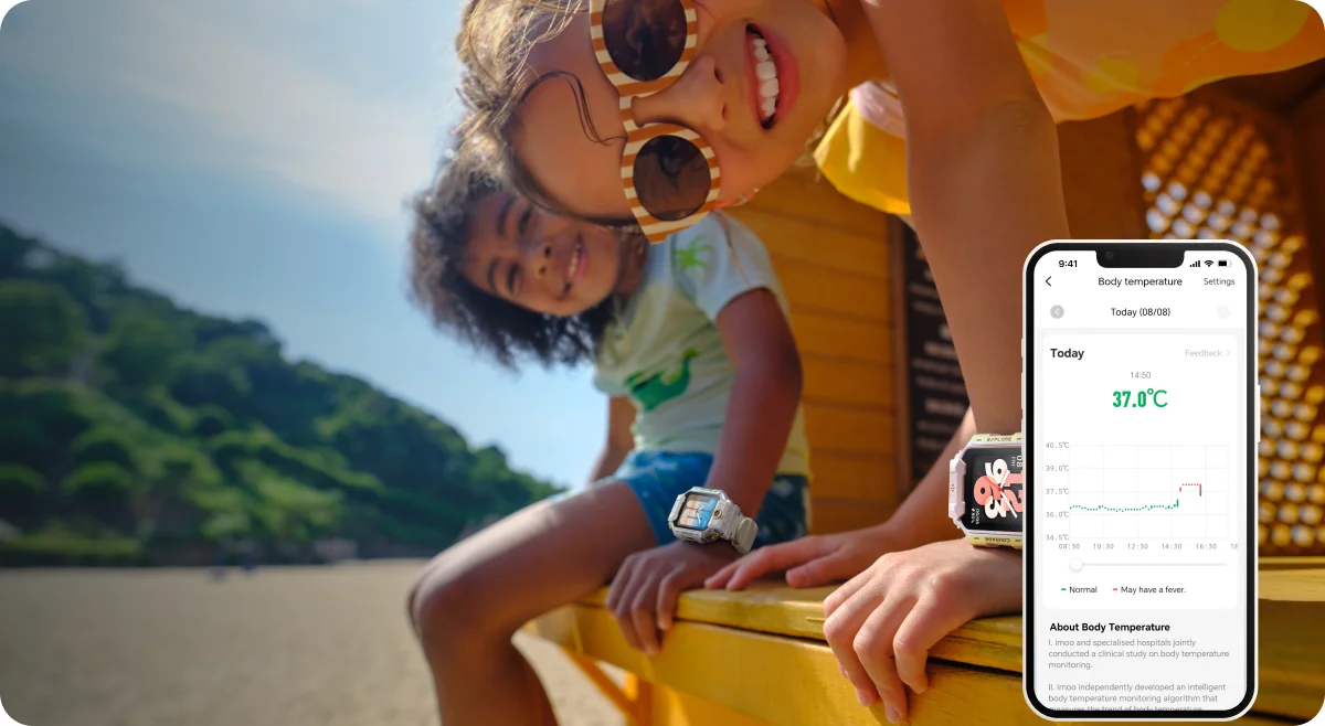 and advanced Al algorithms, the imoo app provides comprehensive health monitoring. With this technology, you can access accurate and trustworthy health data, including heart rate and emotional changes, to ensure your child's well-being around the clock.